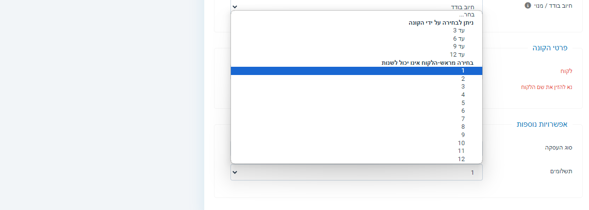 תשלומים - מספר התשלומים.
