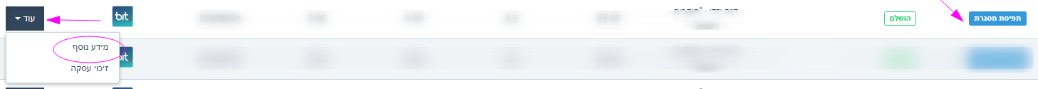 - לחצן זה מופיע בשדה עוד בתוך שורת תפיסת מסגרת של אותה עסקה.